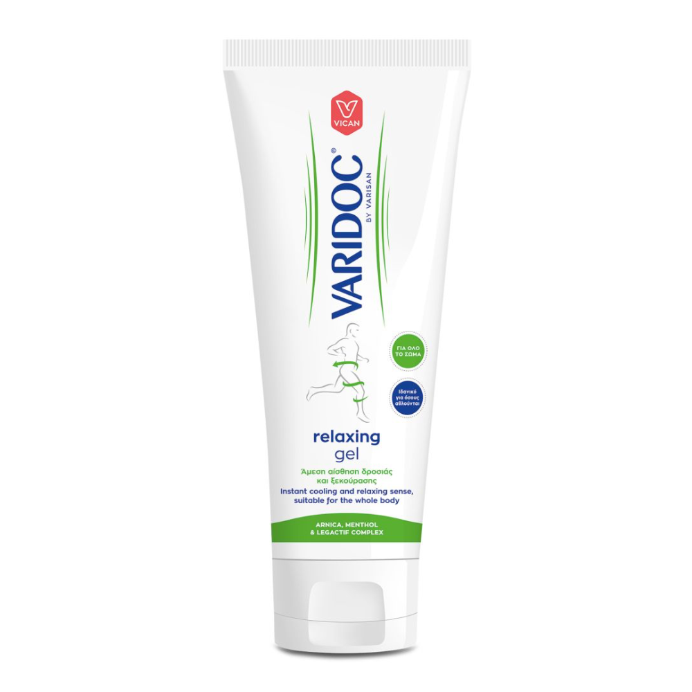 To Varidoc Relaxing Gel ενυδατώνει και ανακουφίζει τα καταπονημένα και ταλαιπωρημένα άκρα, ενώ είναι κατάλληλο και για όλο το σώμα. Καταπραΰνει το πρήξιμο, την ένταση, την αίσθηση καψίματος και τον κνησμό, ενώ παράλληλα ανακουφίζει από τους μυϊκούς πόνους. Με άρνικα, μενθόλη και το καινοτόμο δραστικό σύμπλεγμα Legactif Complex.
