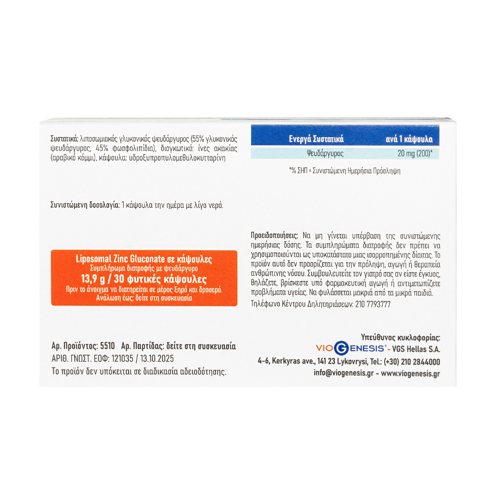 VIOGENESIS LIPOSOMAL ZINC GLUCONATE 30VEG.CAPS