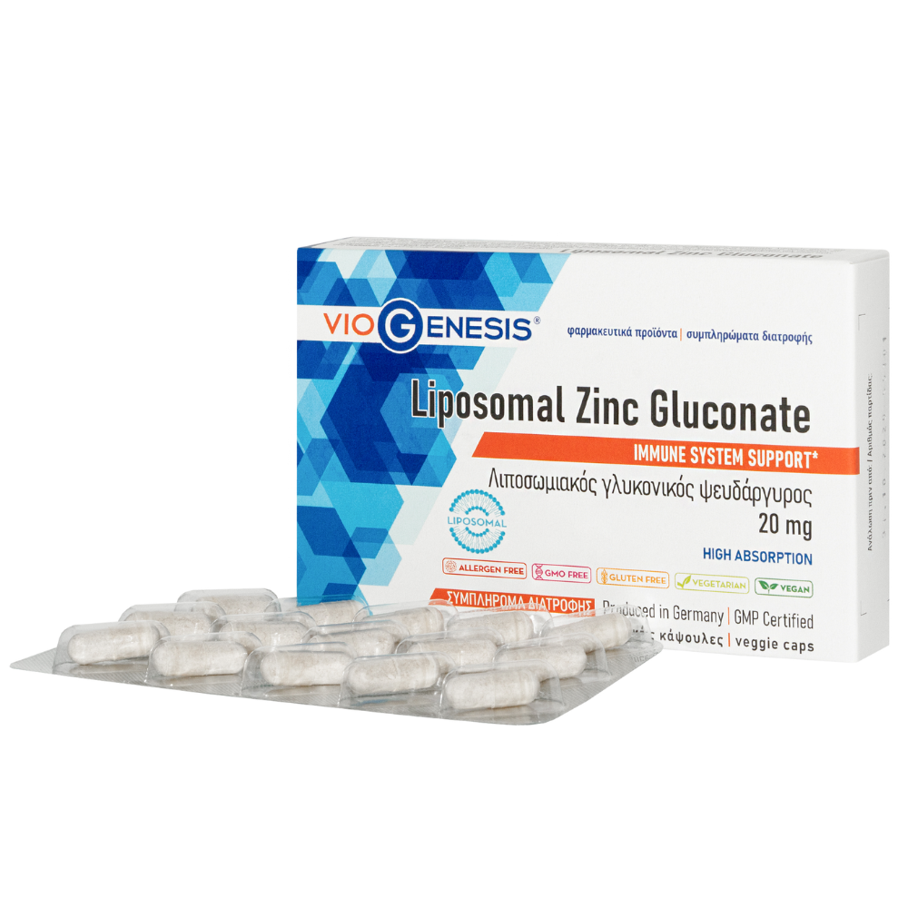 Το VioGenesis Liposomal Zinc Gluconate αποδίδει 20 mg ψευδαργύρου ανά κάψουλα. Τα λιποσώματα απορροφώνται αποτελεσματικά από το έντερο και μπορούν να εισέλθουν απευθείας στα κύτταρα. Λόγω της αυξημένης απορρόφησης, απαιτείται μικρότερη ημερήσια δόση για να επιτευχθεί το ίδιο αποτέλεσμα, συγκριτικά με ένα συμπλήρωμα διατροφής με ψευδάργυρο σε μη λιποσωμιακή μορφή.