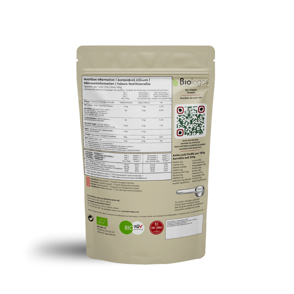Η Βιολογική Πρωτεΐνη Αρακά «Βιολόγος» φέρνει την αγνότητα και τη θρεπτική αξία του λευκού μπιζελιού Καναδά στο πιάτο σας. Αποτελεί μια φυσική λύση που συνδυάζει παράδοση και καινοτομία, προσφέροντας θρέψη, ευελιξία και απόλαυση σε κάθε γεύμα.