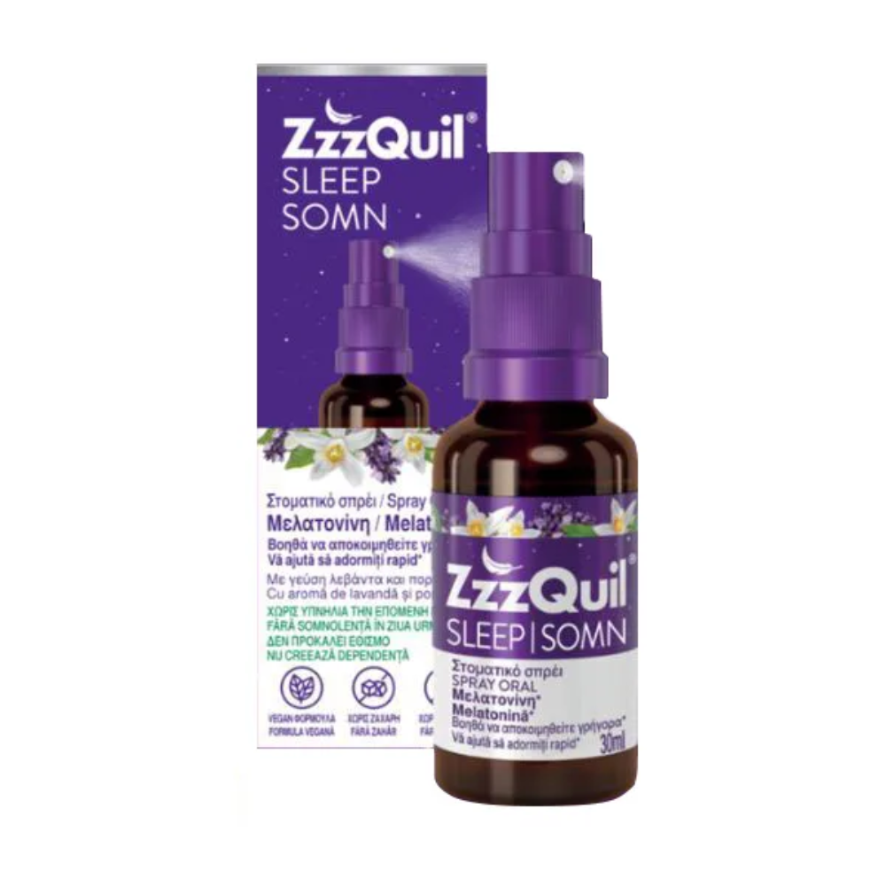Το ZzzQuil Natura Sleep Oral Spray είναι ένα συμπλήρωμα διατροφής με μελατονίνη η οποία συμβάλλει στη μείωση του χρόνου έλευσης του ύπνου και στην ανακούφιση των συμπτωμάτων του jet lag.